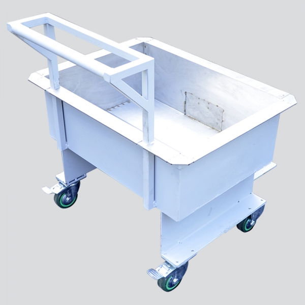 WIP (Work In Process) Trolley merupakan trolley yang digunakan untuk menampung dan memindahkan komponen rantai motor dari satu proses ke proses lainnya pada perusahaan produsen rim dan rantai motor Jepang. Trolley tersebut memiliki bagian dalam yang terbuat dari SUS304. Trolley tersebut memiliki pintu pada bagian depan untuk mengeluarkan komponen rantai motor yang ditampung ke dalam wadah yang disediakan. Trolley tersebut memiliki 4 buah roda PU berwarna hijau yang cocok digunakan pada lantai produksi. Trolley tersebut memiliki pengunci pada bagian roda untuk mengunci posisi trolley agar stabil ketika memindahkan komponen rantai yang ada ke dalam wadah.